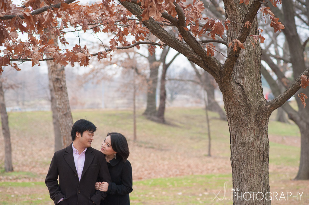 After 3 hours of wedding formals in the morning through freezing weather, we trekked out to the park in the afternoon right before it rained. Estelle and Sean are troopers and a wonderful couple. Congratulations on the engagement!