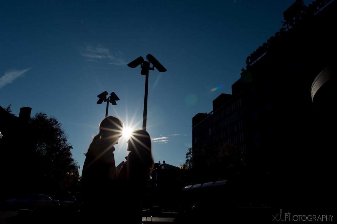 We love fall, and clearly Jill and Zach love it too – enough to invite us out to Harvard University campus early Saturday morning for a fall colors couple session! The sun was just peeking over the horizon, and the colors on campus just lit up beautifully.